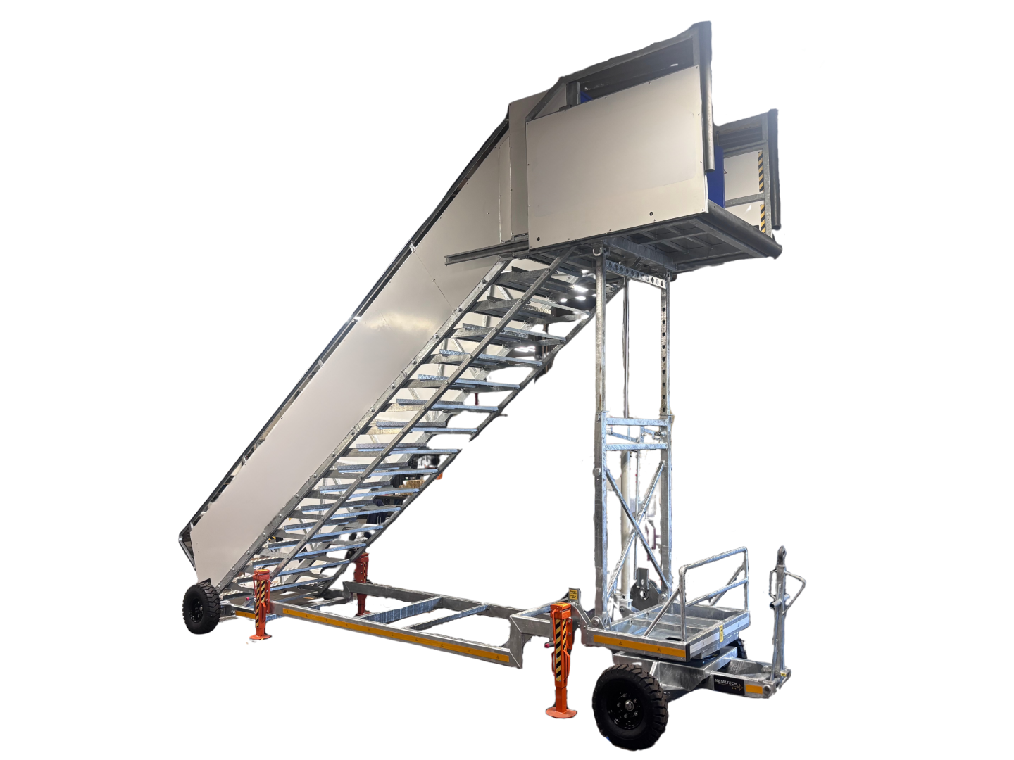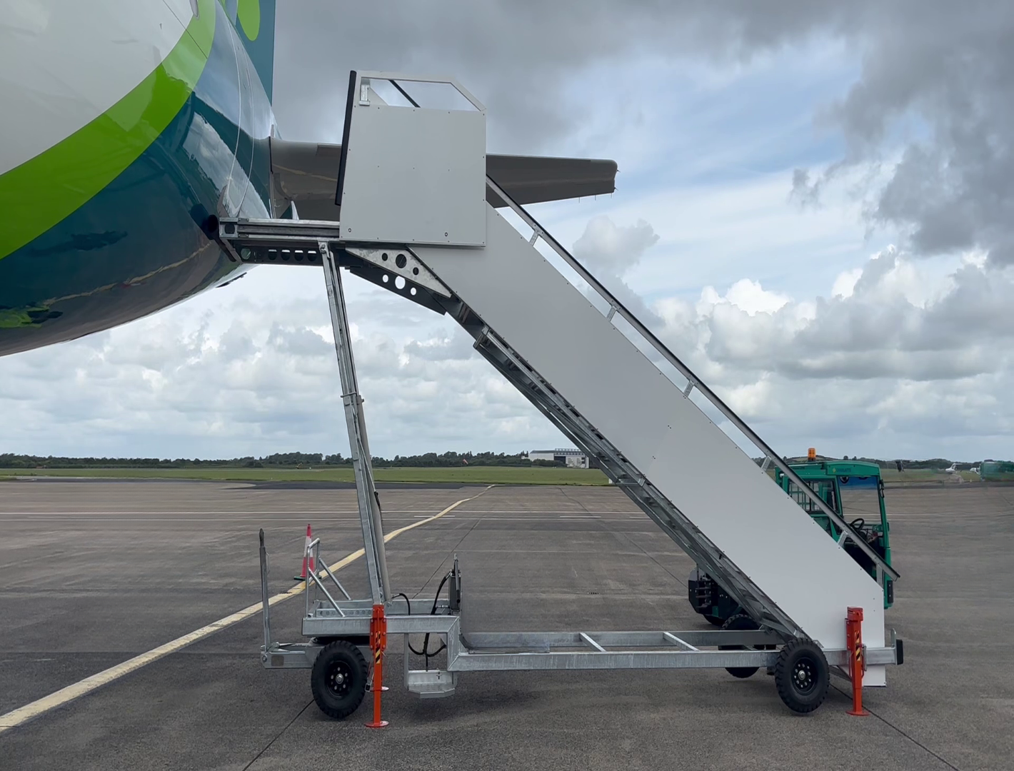 The ARS1 passenger stairs are designed to allow passenger access to the aft door of B737 aircraft. This stairs has a platform height variance of 2.5-3.0m with a manually operated lifting jack and stabilisers.